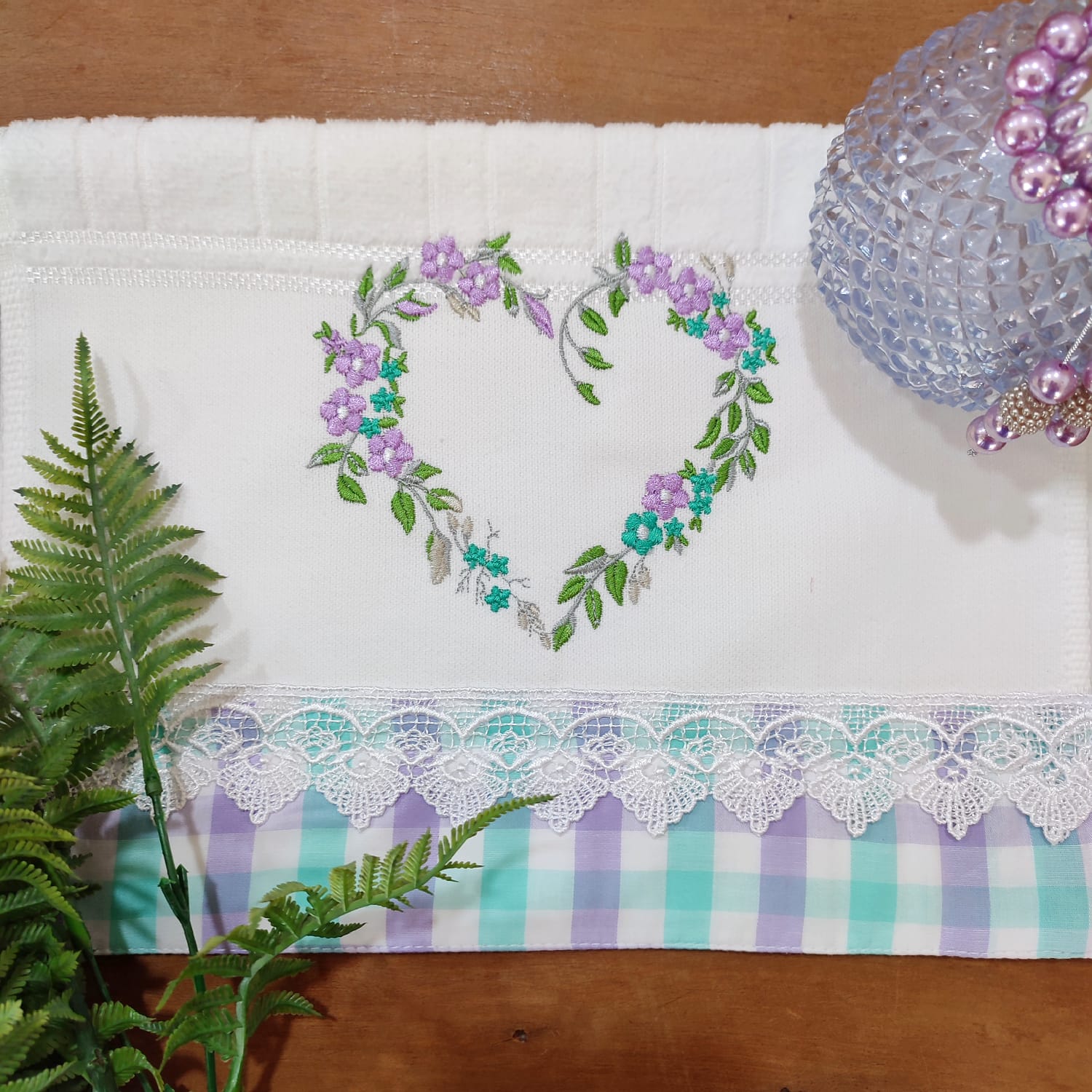 TOALHA DE LAVABO CORAÇÃO FLORAL LILÁS