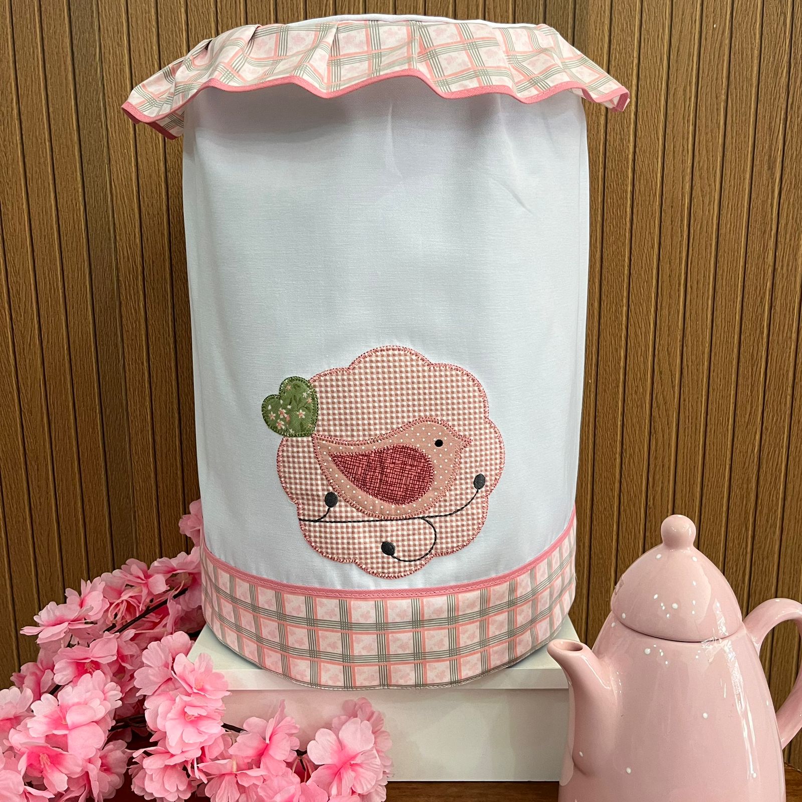 CAPA GALÃO 10 LITROS – BIRD ROSA, 27CM X 25CM.