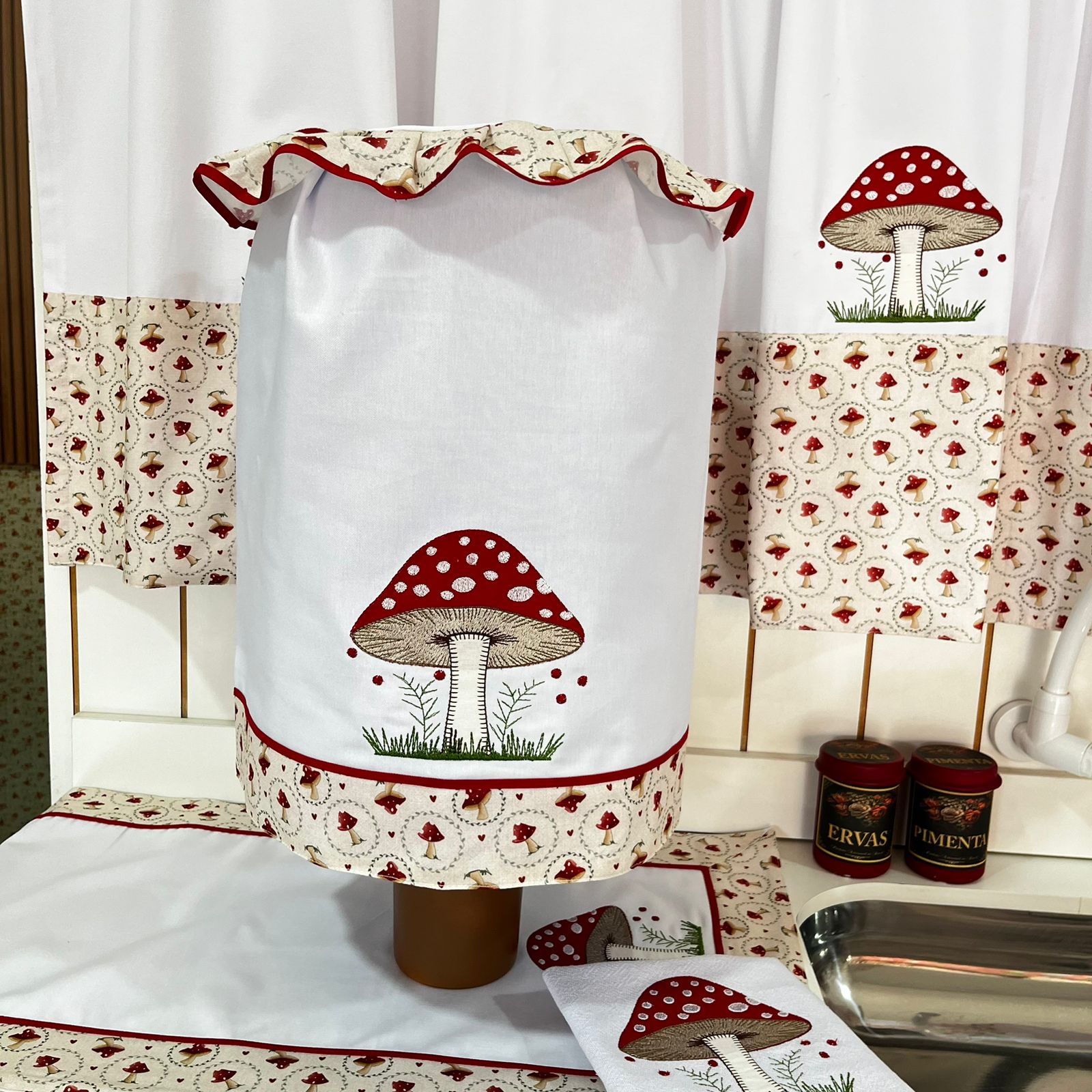 Desde 2002, desenvolvemos as mais lindas coleções de jogos de cozinha e lavabo. Peças cuidadosamente elaboradas para trazer beleza e requinte à sua cozinha e lavabo. Novidades em estampas, motivos e cores, que sempre acompanham as tendências da moda. Artigos em decoração que complementam e embelezam ainda mais as peças. Compre em até 12 vezes no cartão de crédito. Entregamos para todo o Brasil. Atendimento online e por WhatsApp.