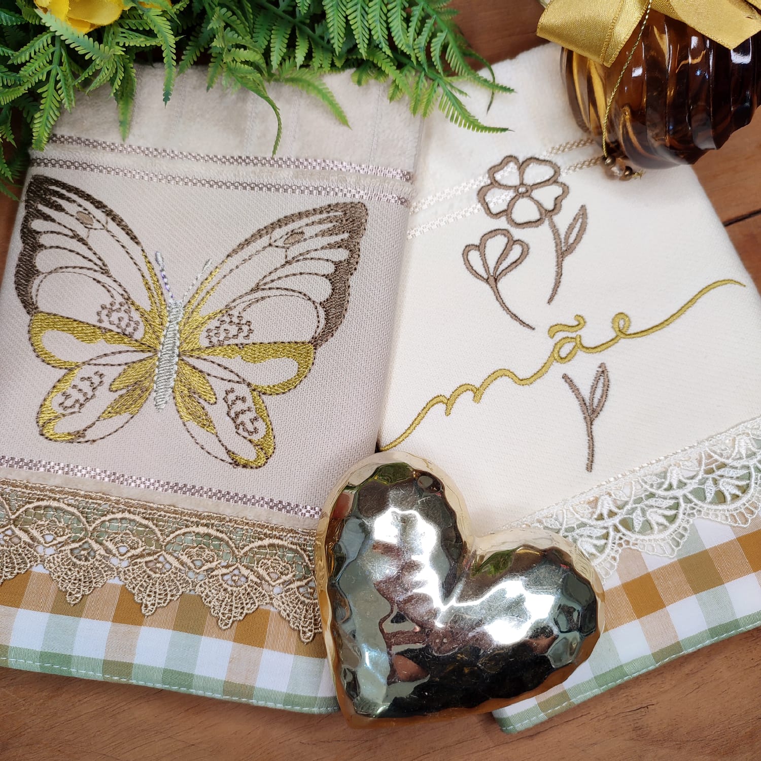 KIT 2 TOALHAS DE LAVABO BORDADAS MÃES - TABACO.