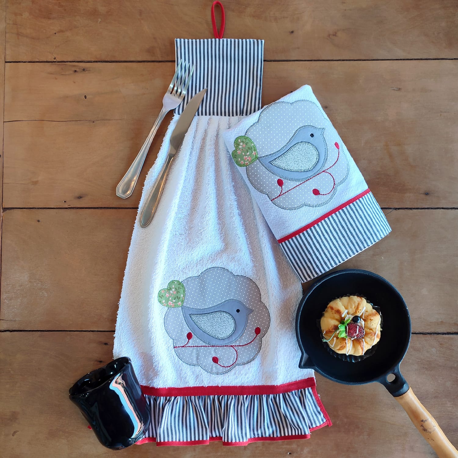 JOGO BATE MÃO E PANO DE PRATO - BIRD CINZA
