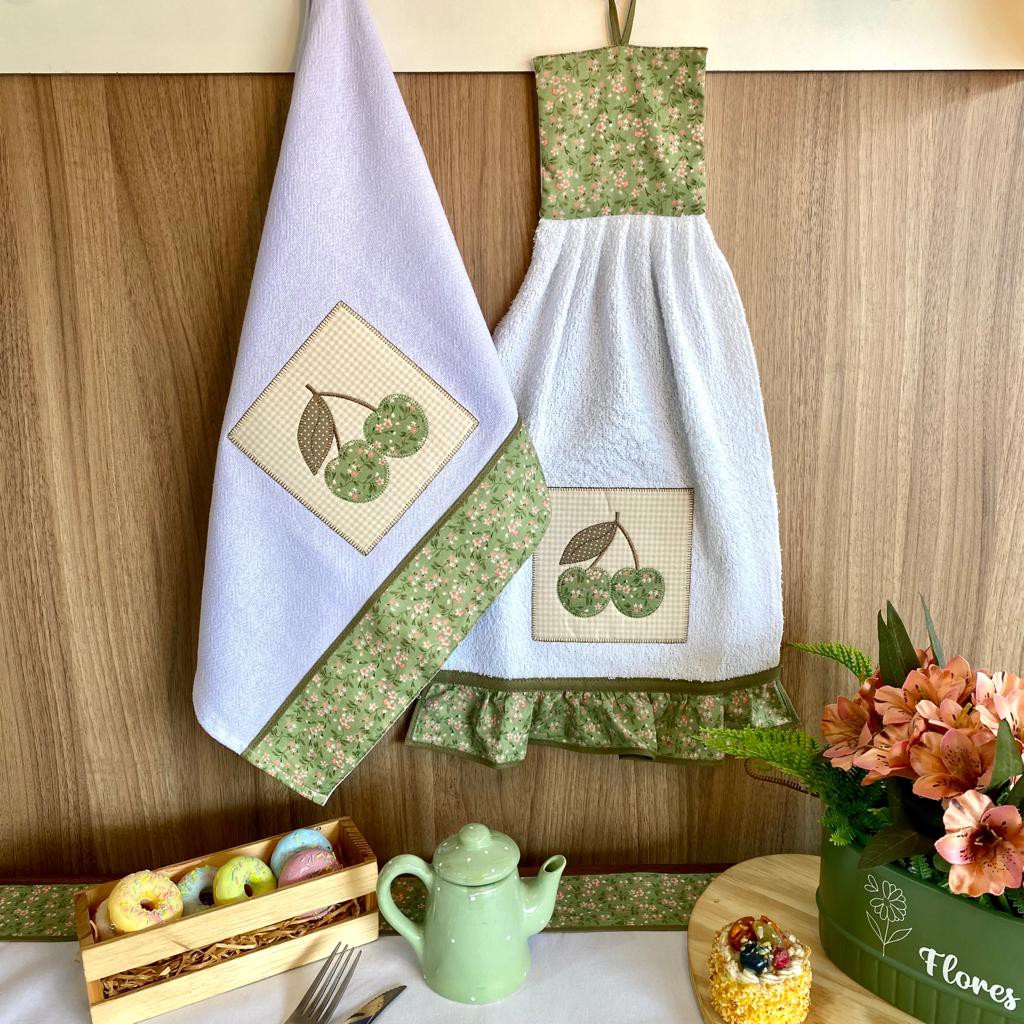 JOGO BATE MÃO E PANO DE PRATO - CEREJA VERDE.
