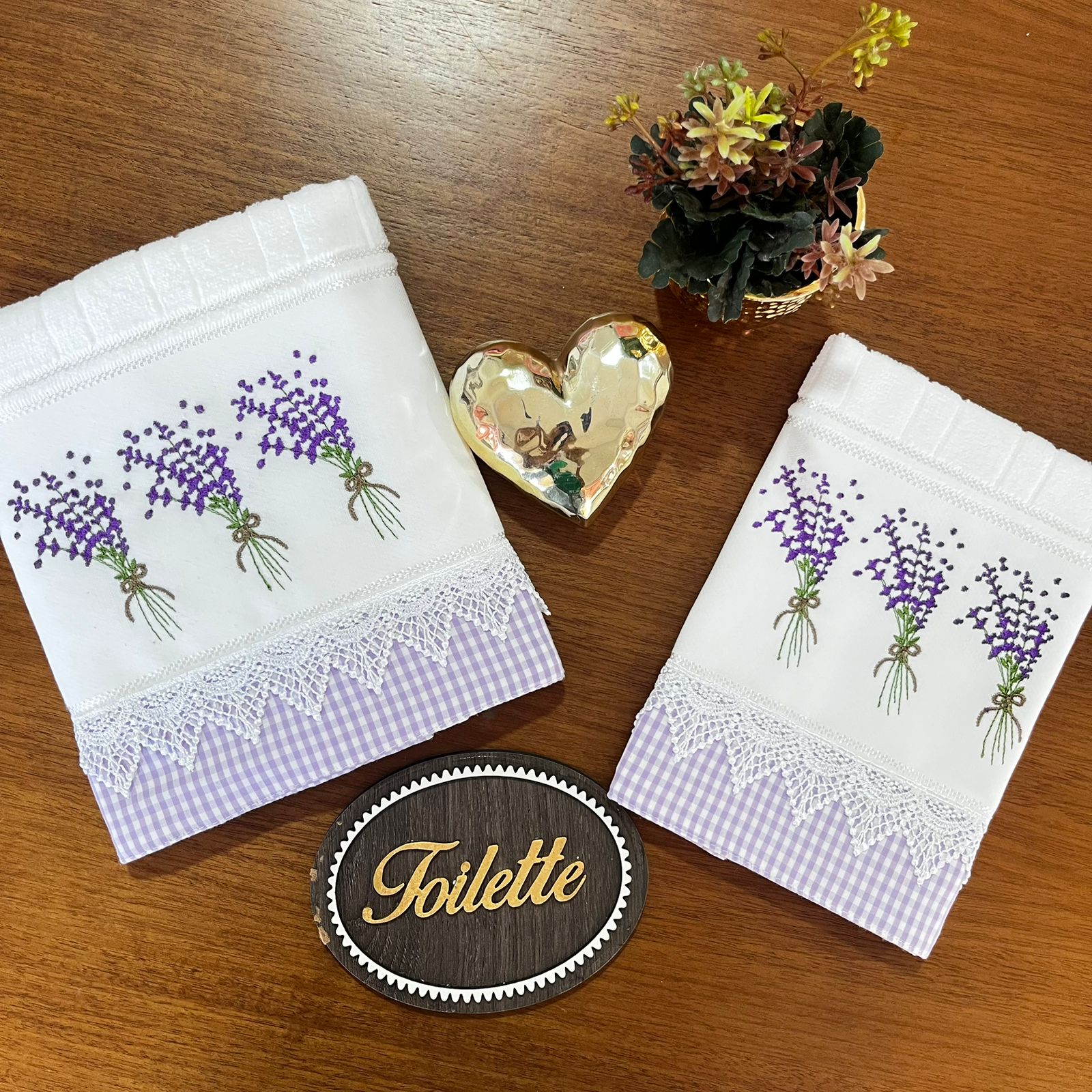 JOGO E LAVABO BORDADO - GALHOS LAVANDA.