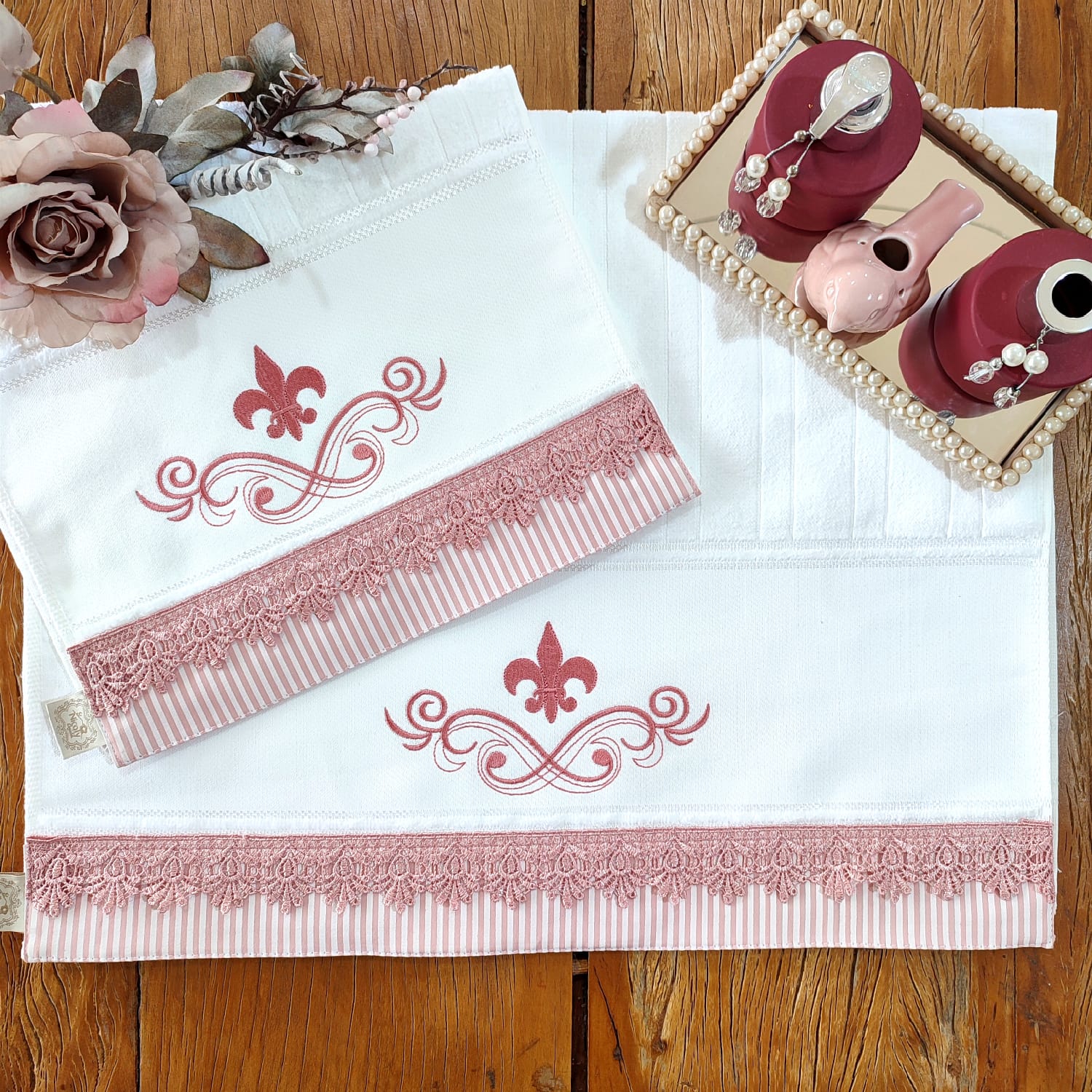 JOGO ROSTO E LAVABO - FLOR DE LIZ ROSA
