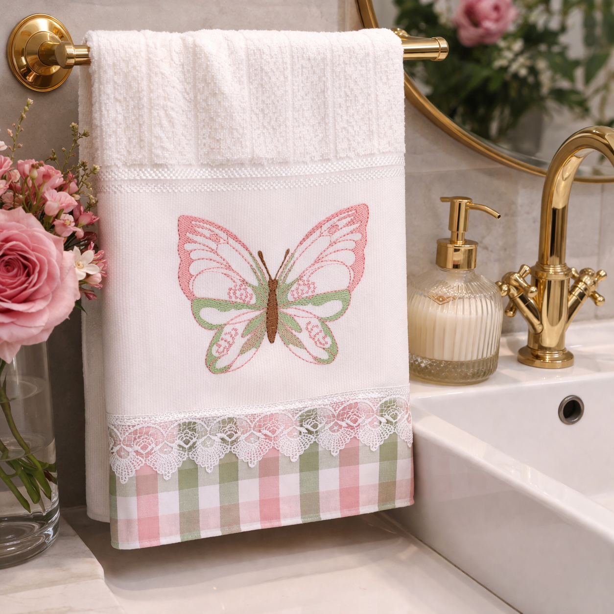 Nossa toalha de lavabo bordada é perfeita para quem ama decoração romântica, elegante e delicada, trazendo um toque especial que encanta qualquer visita 🦋🌸