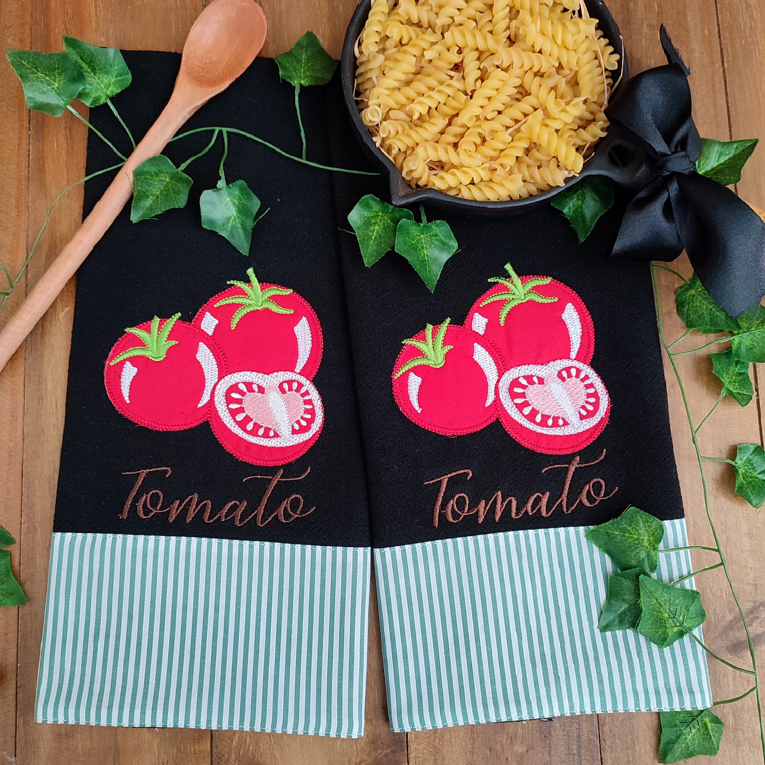 KIT 2 PANOS DE PRATO PRETO – Tomate Verde, 65cm x 44cm.