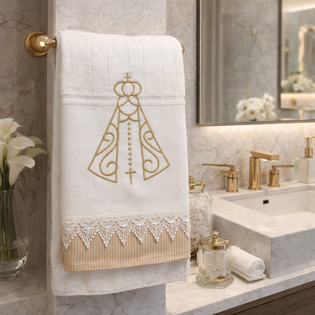Nossa toalha de lavabo bordada é perfeita para quem ama decoração romântica, elegante e delicada, trazendo um toque especial que encanta qualquer visita 🦋🌸