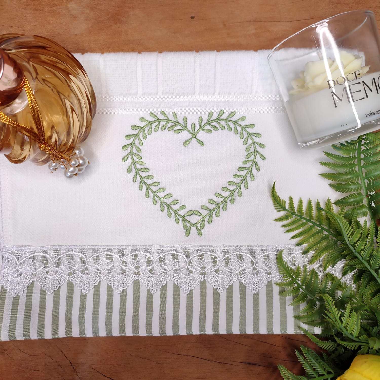 TOALHA DE LAVABO AVULSO BORDADO - CORAÇÃO VERDE, 30cm x 45cm