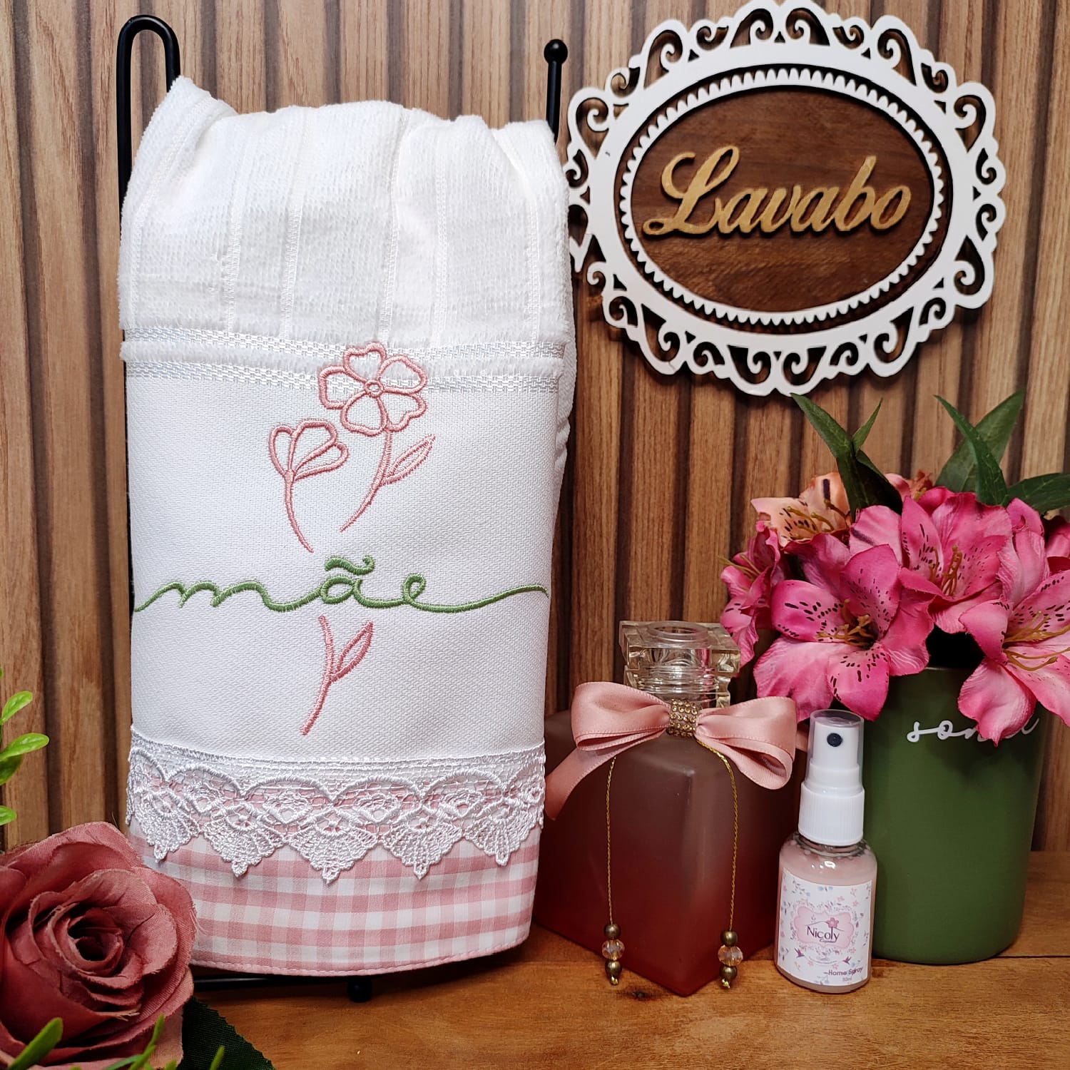 TOALHA DE LAVABO AVULSO BORDADO - RAMO MÃO ROSA 30cm x 45cm.